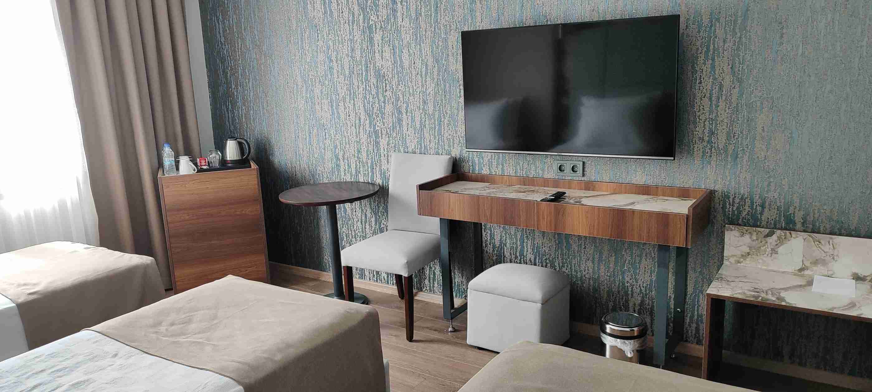 Odalarımız şehir manzaralı olup; 3. katta bulunmaktadır. Geniş pencereye sahiptir. Keyifle zaman geçirebileceğiniz ve konforunuz ve tüm ihtiyaçlarınıza hitap edebilecek şekilde dekore edilmiştir.